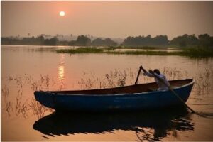 As Manoj ji told us, the Pavagadh hill range has many more monuments to behold. But we had to leave the next morning. So, as the sun rose, we pottered around the mango groves and village ponds, leaving the boat people to their centuries-old rituals. We are, after all, only passers-by. But this treasure remains, a breath away, for the people here and I hope they forever take care of it.