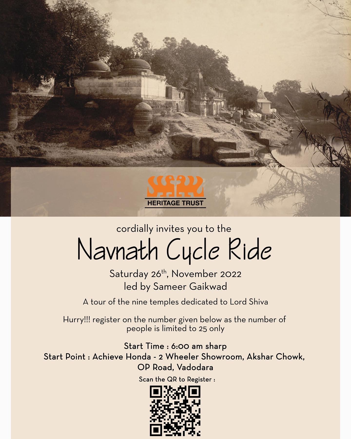 Navnath Cycle Ride Saturday 26th, November 2022 led by Sameer Gaikwad A tour of the nine temples dedicated to Lord Shiva Hurry!!! register on the...